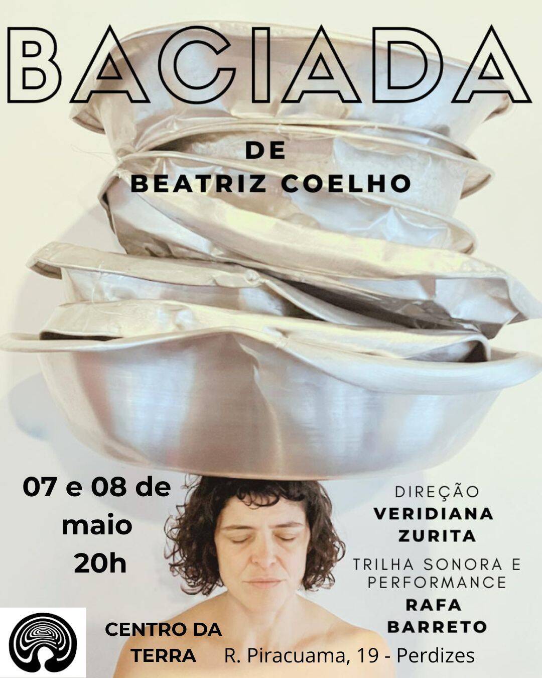 Baciada é um trabalho de dança que discute as adversas condições sociais de sermos mulheres e tem como objeto cênico a bacia de alumino. Em sua dramaturgia Baciada elabora questões relacionadas as mulheres de naturezas plurais, oriundas de diversos contextos históricos, socioeconômicos, culturais e territoriais. Mulheres que trazem em seus corpos marcas de inúmeras e sistemáticas violências, da naturalização da sobrecarga de trabalho e obrigações com o cuidado e a reprodução sexual. A bacia na cena é o objeto que simboliza o papel socialmente imposto às mulheres, seja pela sua relação com os trabalhos domésticos, seja por sua dimensão de receptáculo, objetificado tal qual os corpos femininos.