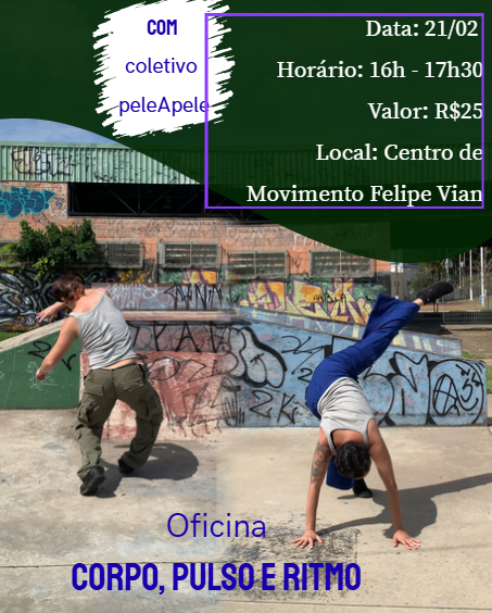 No dia 21/02 acontecerá a oficina “Corpo, pulso e ritmo”, no @ocentrodemovimento, das 16h as 17h30. É destinada a pessoas com ou sem experiência em dança