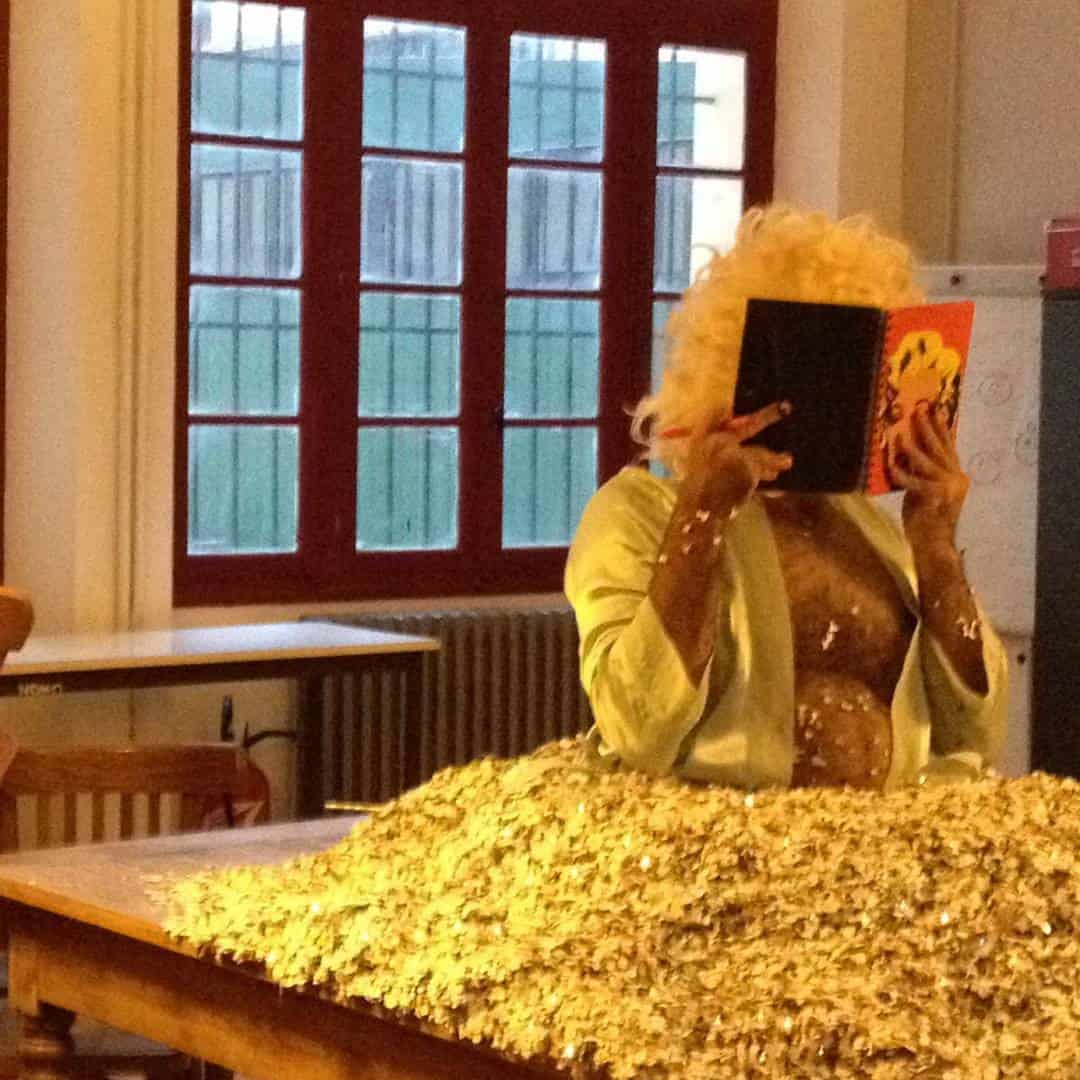“Ah, se eu fosse Marilyn!” é um espetáculo concebido a partir da construção e desconstrução de imagens corporais do cotidiano. Enterrado até a cintura com areia (da praia) ou roupas e objetos (do quarto), a performance reflete sobre a passagem do tempo que nos consome e nos transforma. Quando lembramos dos nossos sonhos antigos e nos damos conta do que nos tornamos, podemos nos questionar: Onde chegamos? O que é dar certo? O que é o sucesso? Sou o que desejei para mim? Que rastros fui deixando pelo caminho? Quem tem direito ao seu próprio desejo ou a ser quem se é? Como podemos pensar essas questões no contexto das pessoas com deficiência?.