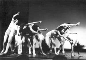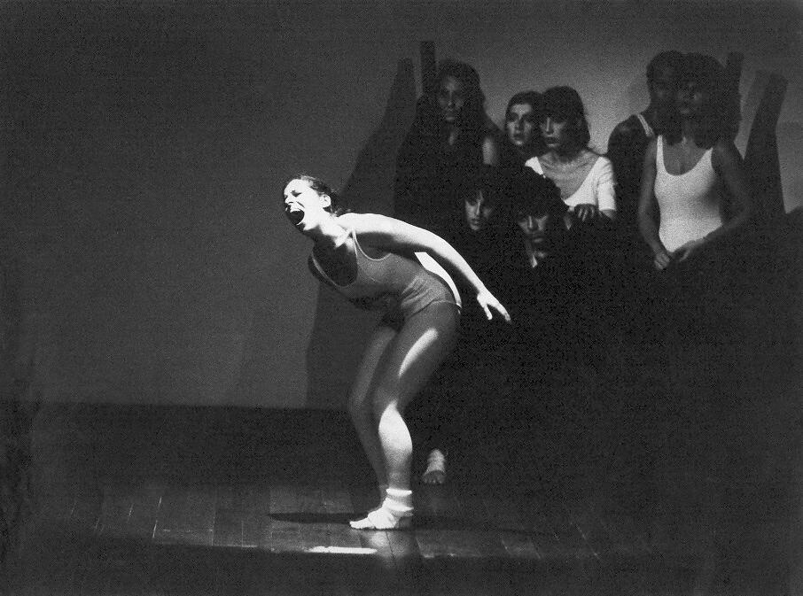 Imagens do espetáculo “Construção”, do Grupo Teatro do Movimento. Com coreografia de Angel Vianna (1928–1992), o espetáculo contava com trilha sonora de Egberto Gismonti (1947), que, na época, havia iniciado uma pesquisa musical baseada em temas indígenas.