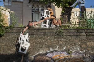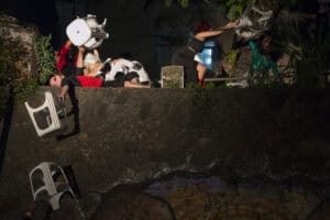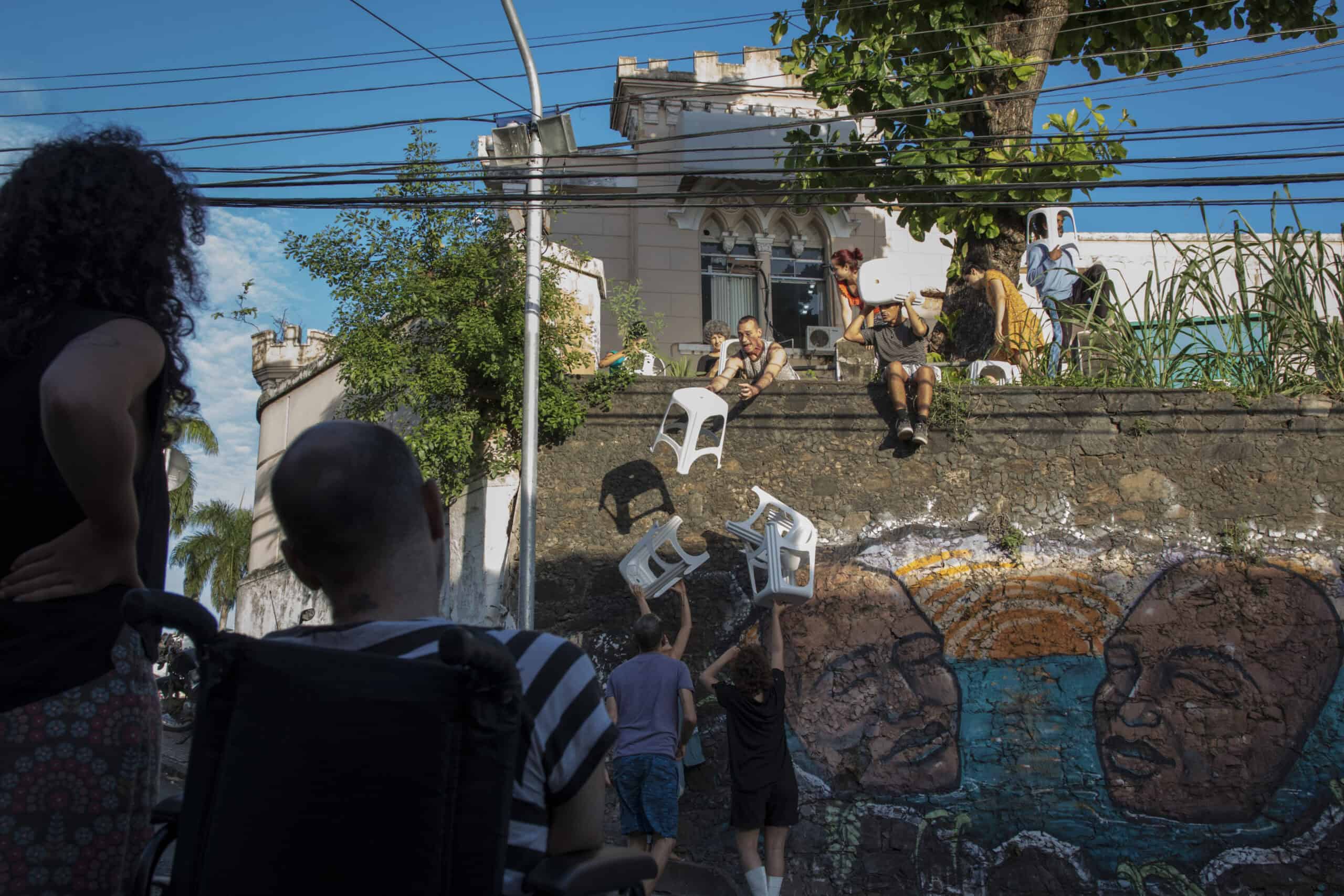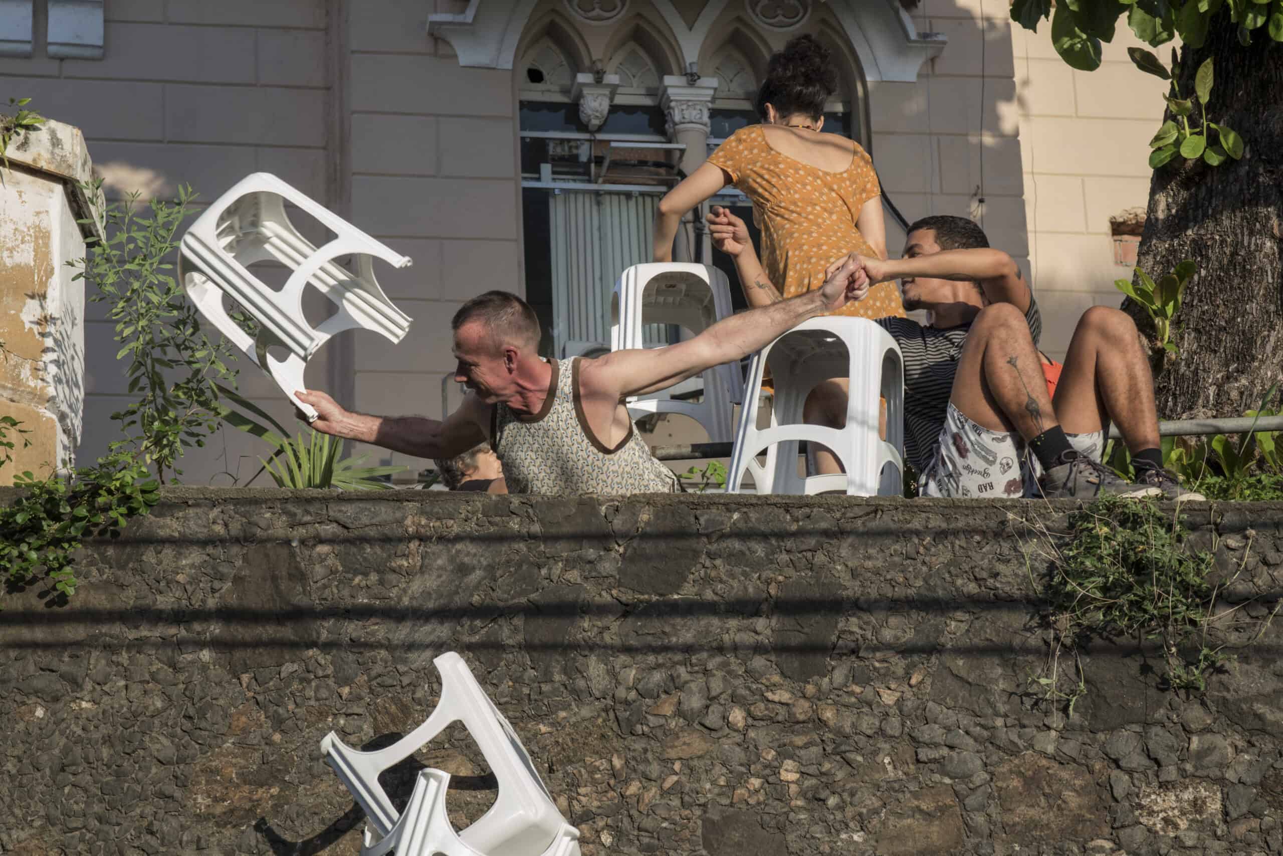A dramaturgia cênica irá observar o espaço em sua cotidianidade e as relações possíveis com o ambiente, interferindo na dinâmica local. Destacamos a riqueza das trocas. Como afetamos e somos afetados pelos outros, o que nos modificam e onde se encontram as nossas ressonâncias? Um ambiente ficcional/real será instaurado em que dramaticidade e humor se interpelam e se interpõem para expor o diálogo poético.