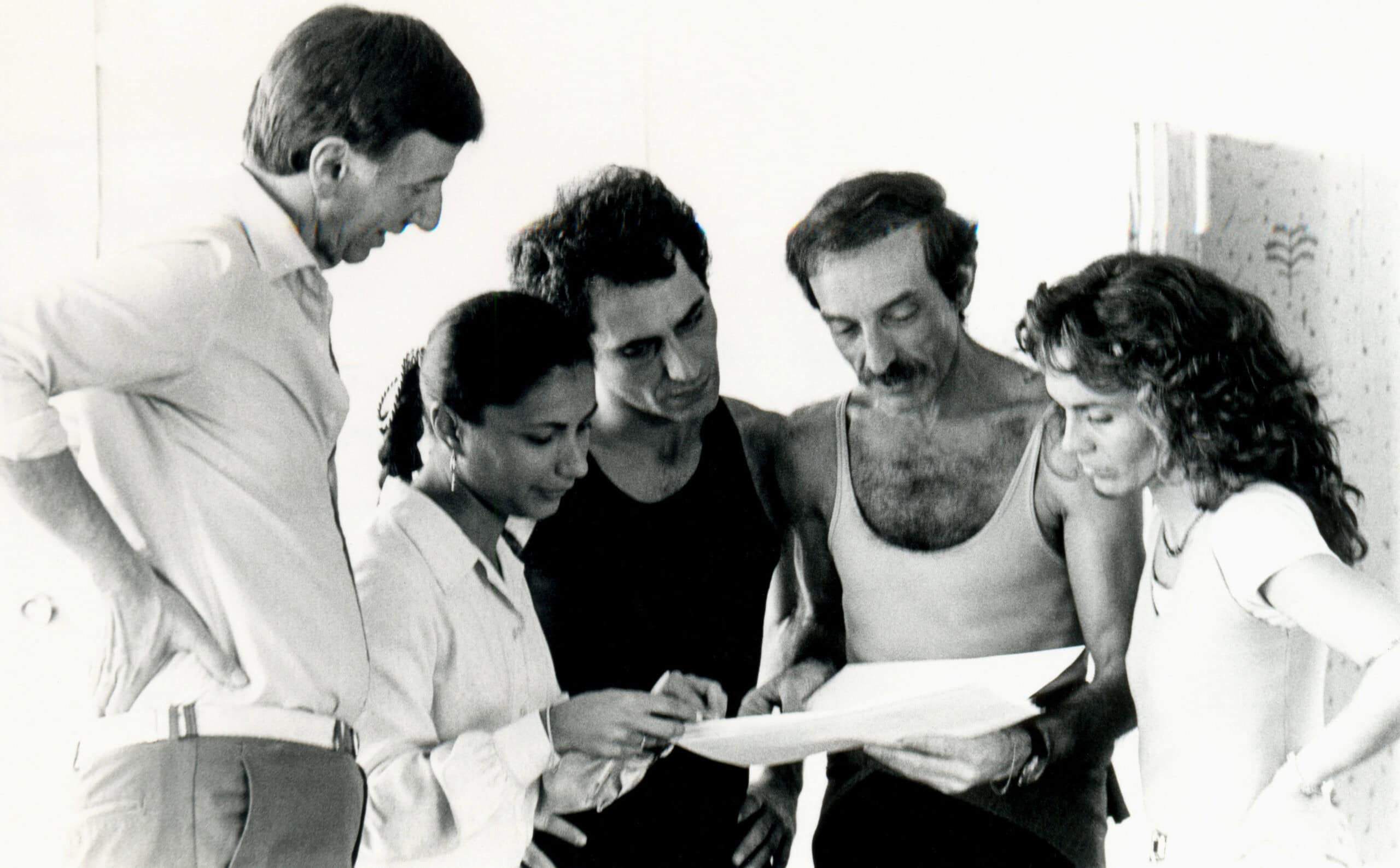 Imagens do ensaio da coreografia “Valsa para Vinte Veias”, ccoreografia de J. C. Violla e Lala Deheinzelin para o Balé da Cidade de São Paulo, com direção artística de Klauss Vianna (1928-1992).