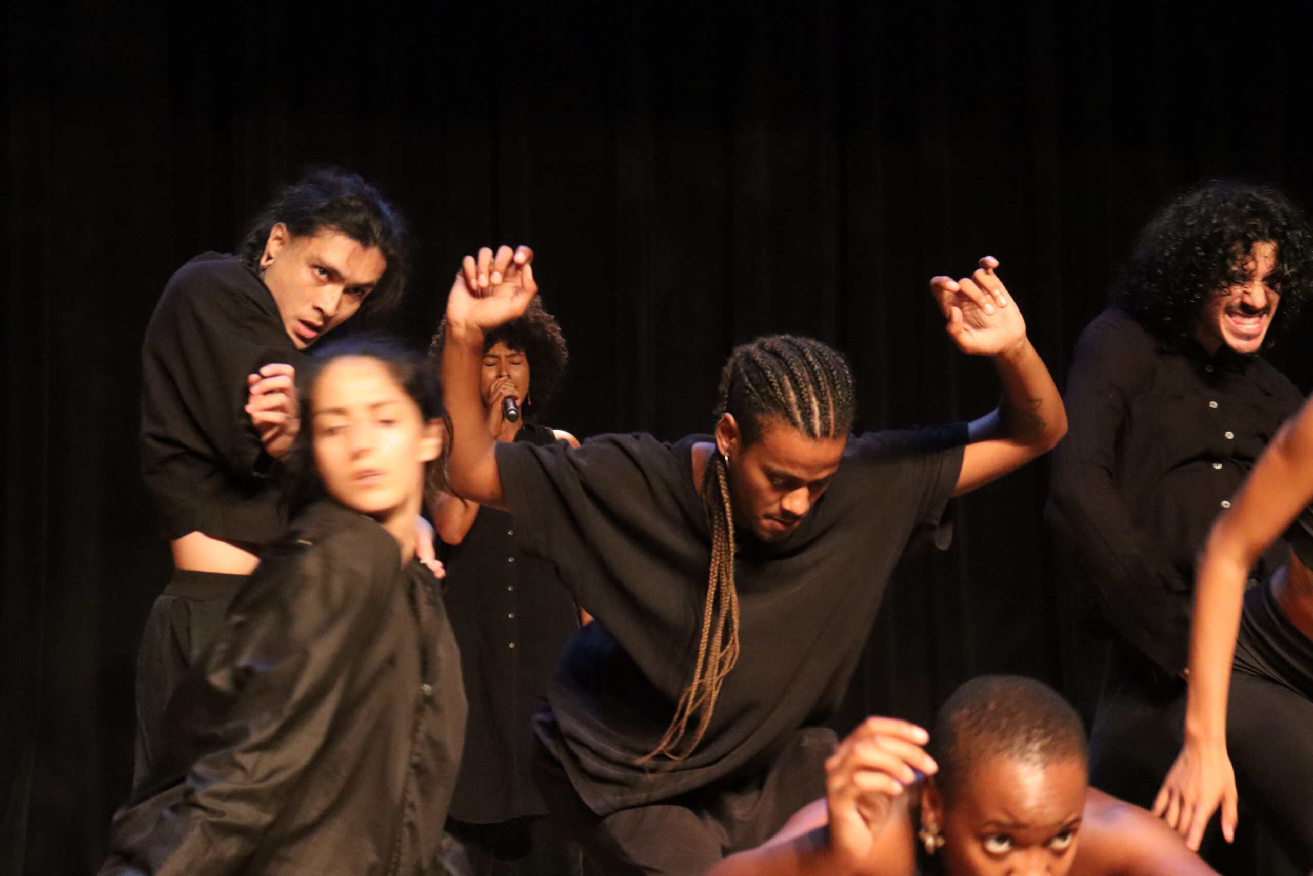 Nessa etapa de criação, o elenco, formado por artistas nesgros, indígenas, uma pessoa amarela, uma colombiana e uma pessoa branca, participou de uma série de atividades para a construção da obra: vivências com mestre de capoeira Pedro Peu, com a iluminadora Dida Genofre e com o figurinista Vitor Flausino; uma visita guiada ao Sítio da Ressaca, um quilombo de travessia; aulas de Dance Hall com o artista Ruan Trindade e de dança contemporânea com o artista Ricardo Januário. Ao lado dos músicos selecionados, o grupo também se aproximou do canto e de alguns instrumentos. “A música fez parte de nossas vivências como possibilidade estética. Temos pessoas que cantam, outras têm experiência em musicais, há também os que tocam instrumentos, os que são da cultura do passinho, da cultura do funk. Queremos pensar a dança para além do movimento”, diz.