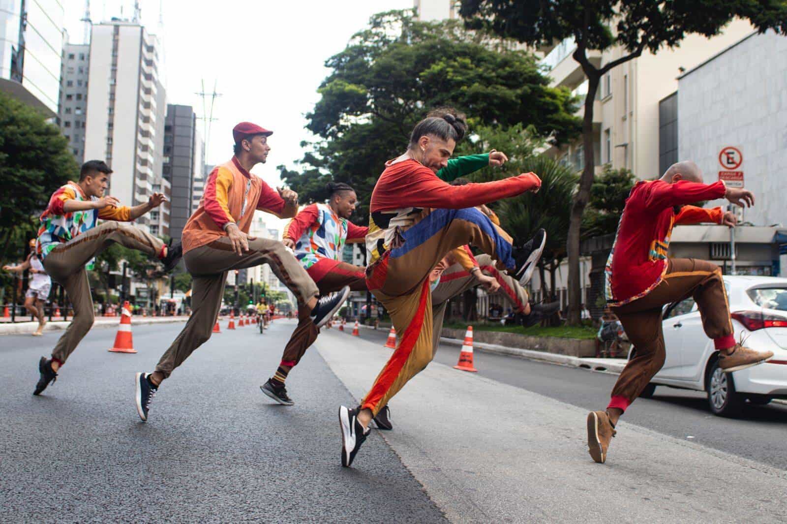 De Minas Gerais, o Camaleão Grupo de Dança apresenta Verga, criação coletiva inspirada na capoeira, que tensiona dualidades e transforma luta em dança. Do Norte, Uýra traz Ponto Final, Ponto Seguido, um rito de rememoração que, com terra preta, desenha raízes no espaço urbano e evoca ressurgências da floresta sob o asfalto. A mineira Malu Avelar homenageia Geraldo Filme na performance criada em São Paulo Cordão, evocando o samba e a presença do corpo negro e LGBTQIA+ no Carnaval como rito de continuidade ancestral. Em Rito Artístico: Farinha Poética, o artista Juani Maniva transforma lembranças da produção de mandioca no Pará em um ritual de reconciliação entre corpo, território e ancestralidade.