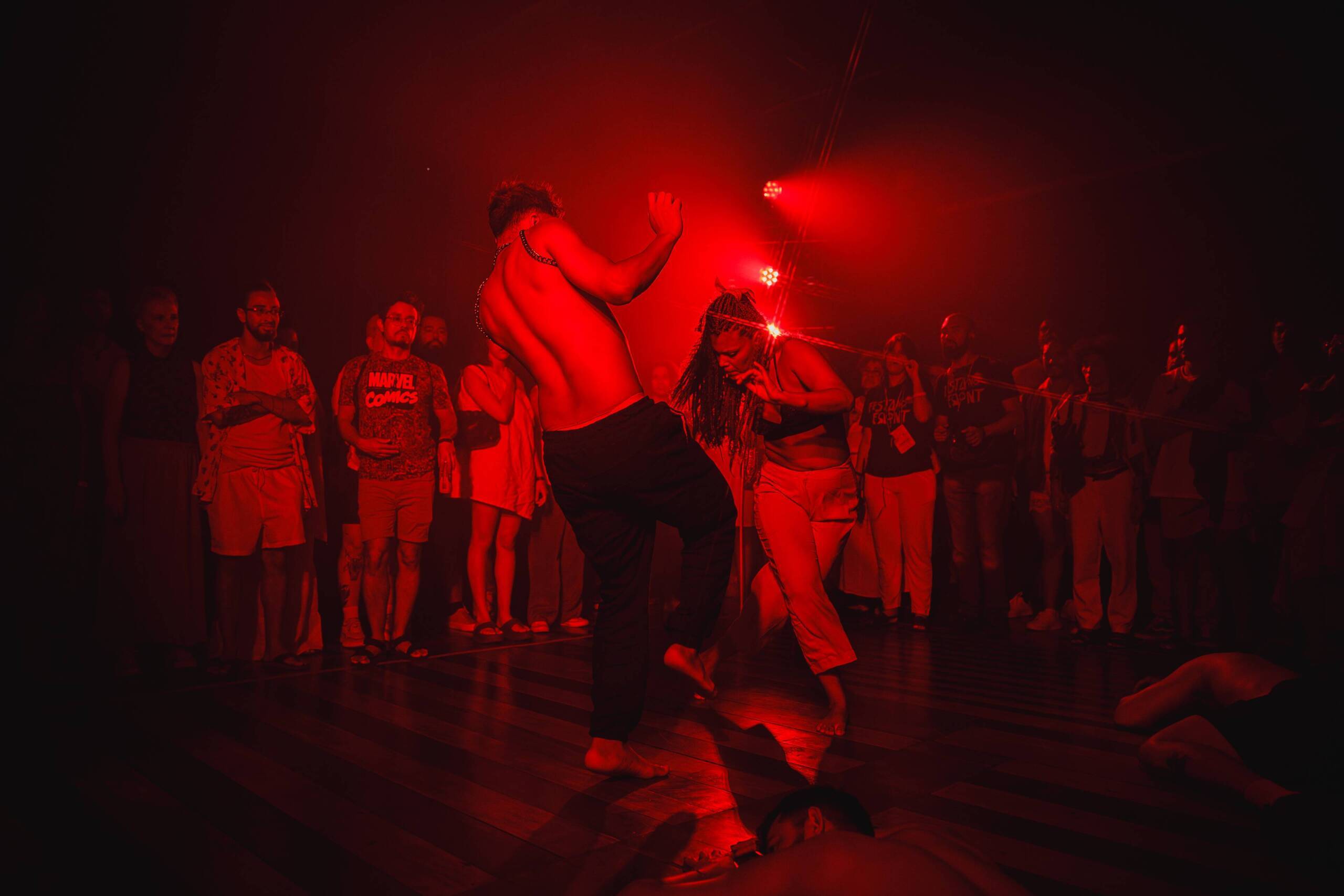 Entre os espetáculos convidados, Vogue Funk, dirigido por Patfudyda (RJ), cruza dois universos nascidos em territórios periféricos e marcados pela resistência cultural: o baile funk e o vogue ball. Ao aproximar batalhas, poses e gestualidades que emergem de contextos distintos, mas conectados por matrizes negras e dissidentes, a obra afirma o corpo como linguagem política e dispositivo de invenção coreográfica. Em cena, atitude, presença e performatividade tensionam convenções estéticas e sociais, projetando novas relações históricas e culturais.