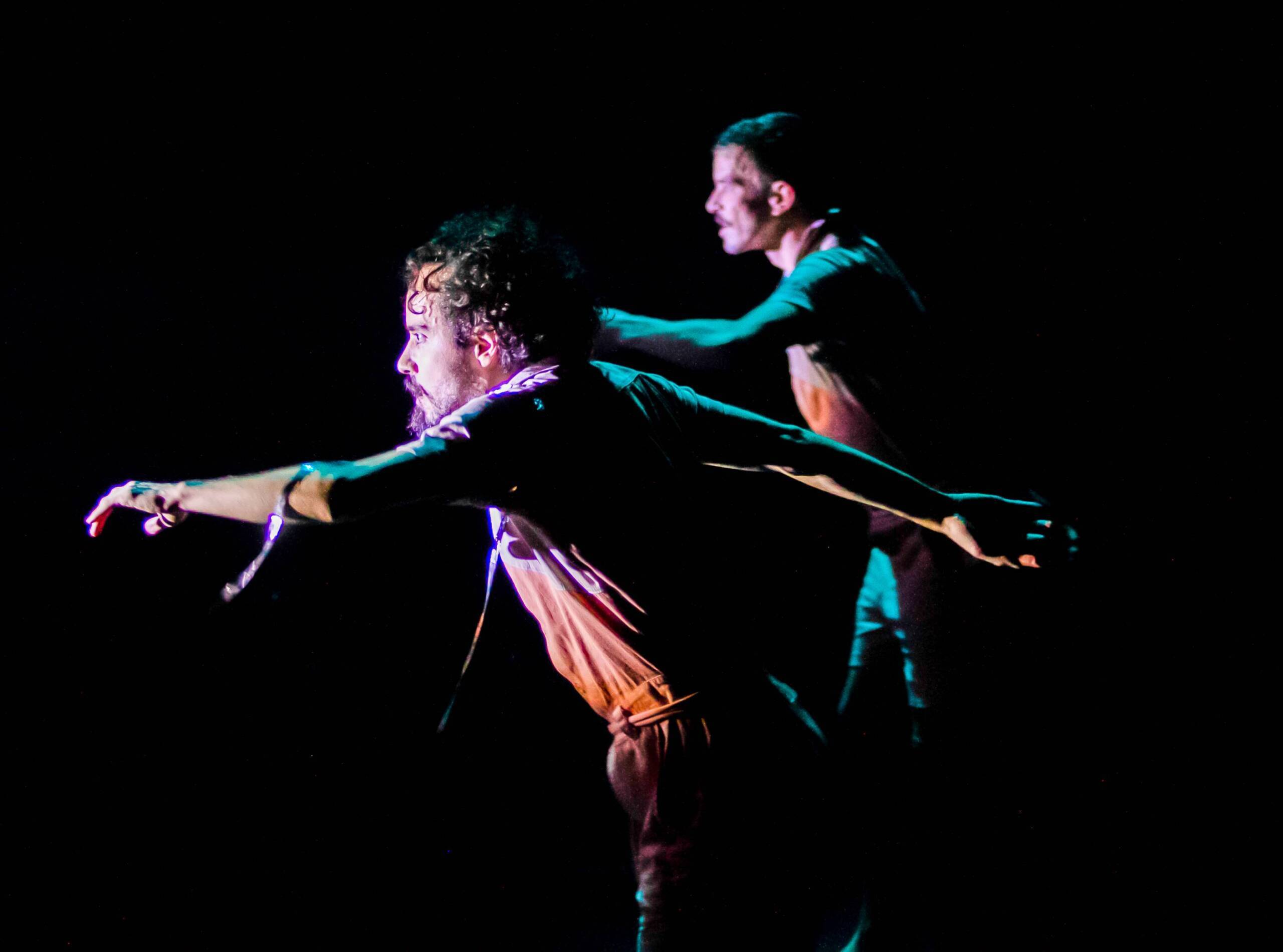 Sinopse: O espetáculo, interpretado pelo duo de bailarinos e coreógrafos Daniel Calvet e João Paulo Gross, se funda na construção de danças a partir de jogos de improviso. As coreografias são desenvolvidas a partir da simplicidade e da criação poética dos intérpretes, cujos gestos se constroem por meio da presença e da fisicalidade de seus corpos. Nessa profusão de imagens e sentidos, a obra transita por memórias, nostalgias, leveza, dramaticidade e ludicidade. Metáforas são criadas sobre uma possível história que a dupla possa querer contar no aqui e no agora.