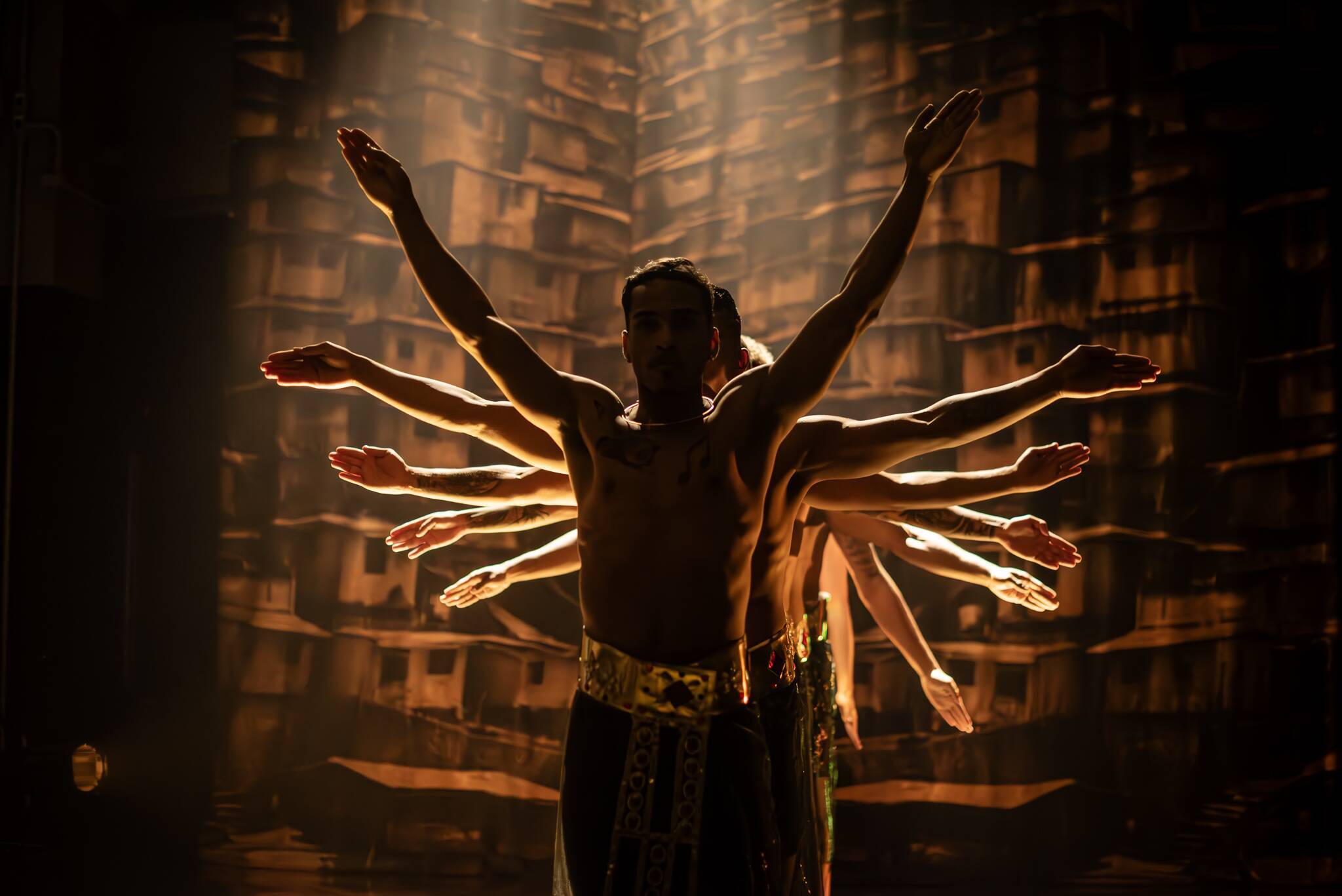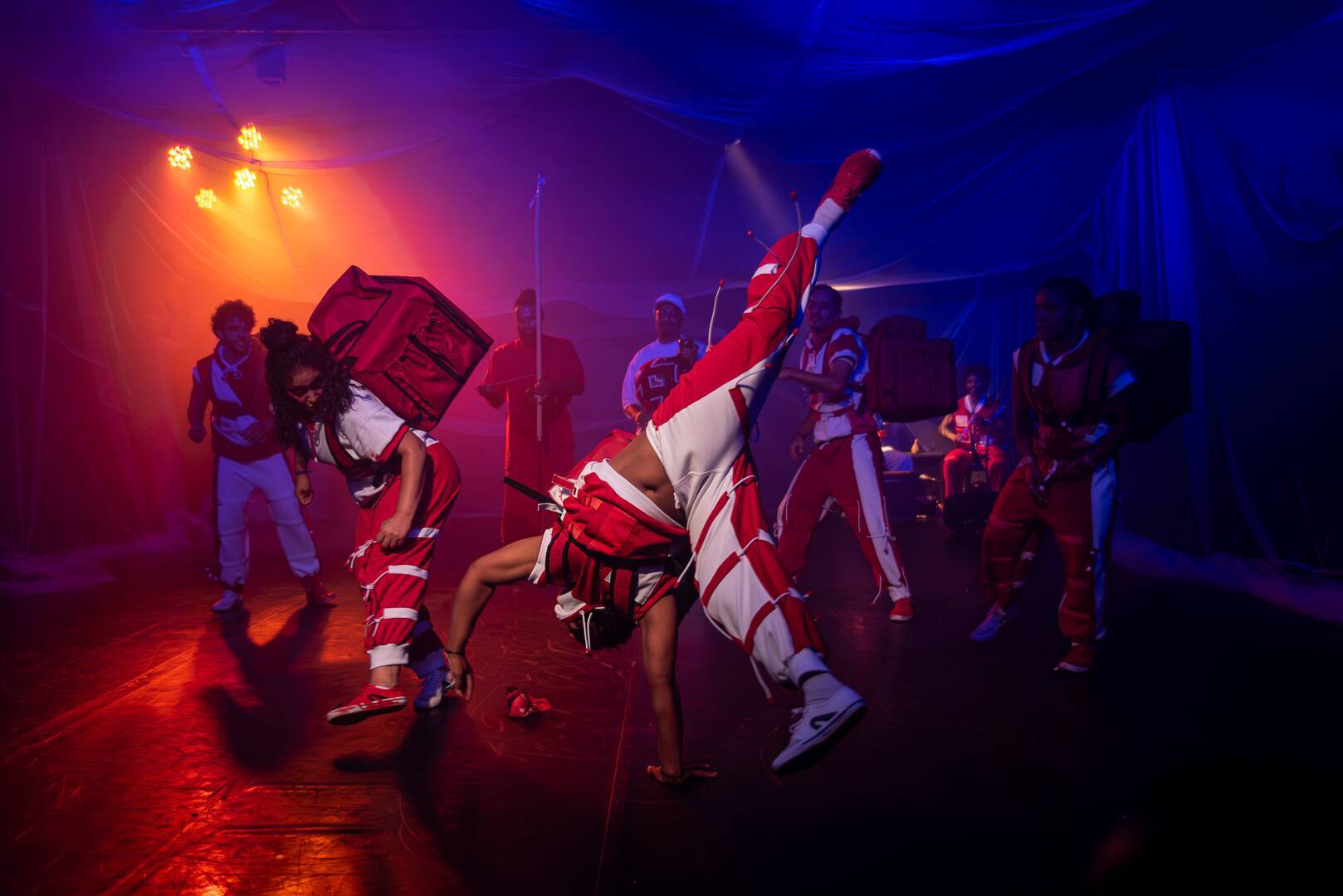 Espetáculo que celebra a cultura periférica brasileira com funk, passinho e danças populares, questionando a miséria e afirmando a vida através da alegria e da resistência, com música ao vivo e dançarinos de diversas experiências.