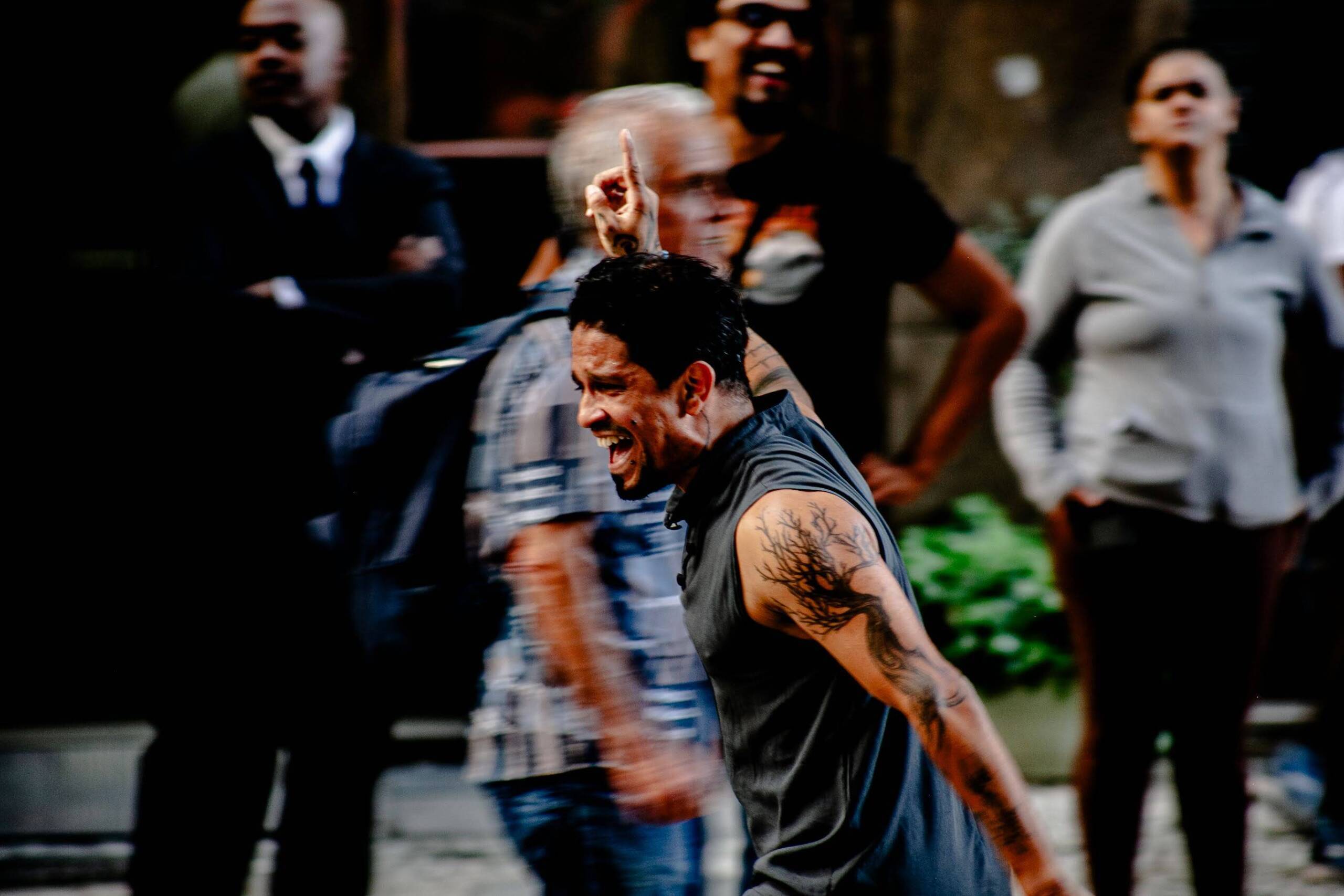 Premiado espetáculo de dança que, inspirado na frase de Mestre Pastinha, aborda a fome e as contradições sociais, focando nos entregadores de delivery, usando capoeira e poesia para falar de resistência e ancestralidade.