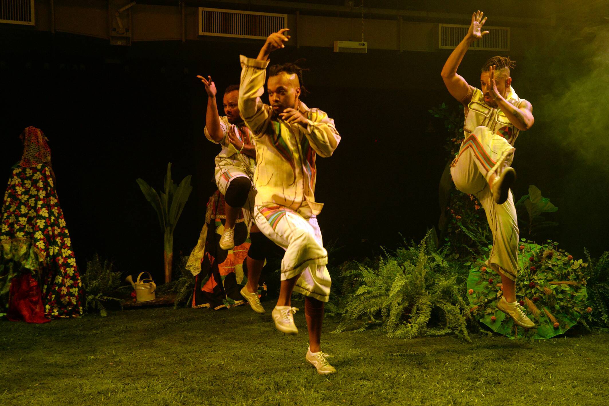 O Núcleo Iêê, apresenta o espetáculo Tudo O Que A Boca Come, no dia, 16/4, às 15h e às 20h30, abordando a fome e as contradições sociais, usando capoeira e poesia para falar de resistência e ancestralidade. Já Estalo, mergulha na tradição do Gumboot, dança sul-africana marcada pelo toque das botas nas minas de ouro e reinventando-a no corpo negro brasileiro, no dia 17/4, às 15h e às 20h30, com o Gumboot Dance Brasil. Pavão Misterioso, com Cia Dual, no dia 18/4, às 18h30, mescla teatro de bonecos e dança, estabelecendo jogos cênicos e de movimentos por meio das quais a narrativa é contada.