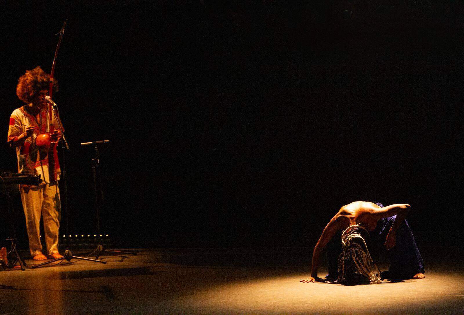Inspirado no universo de um terreiro de Umbanda, o solo reconstrói memórias ancestrais e mobiliza elementos da movimentação de Exu. Em cena, o corpo transita por cantos, rituais e narrativas ligadas às tradições afro-brasileiras.