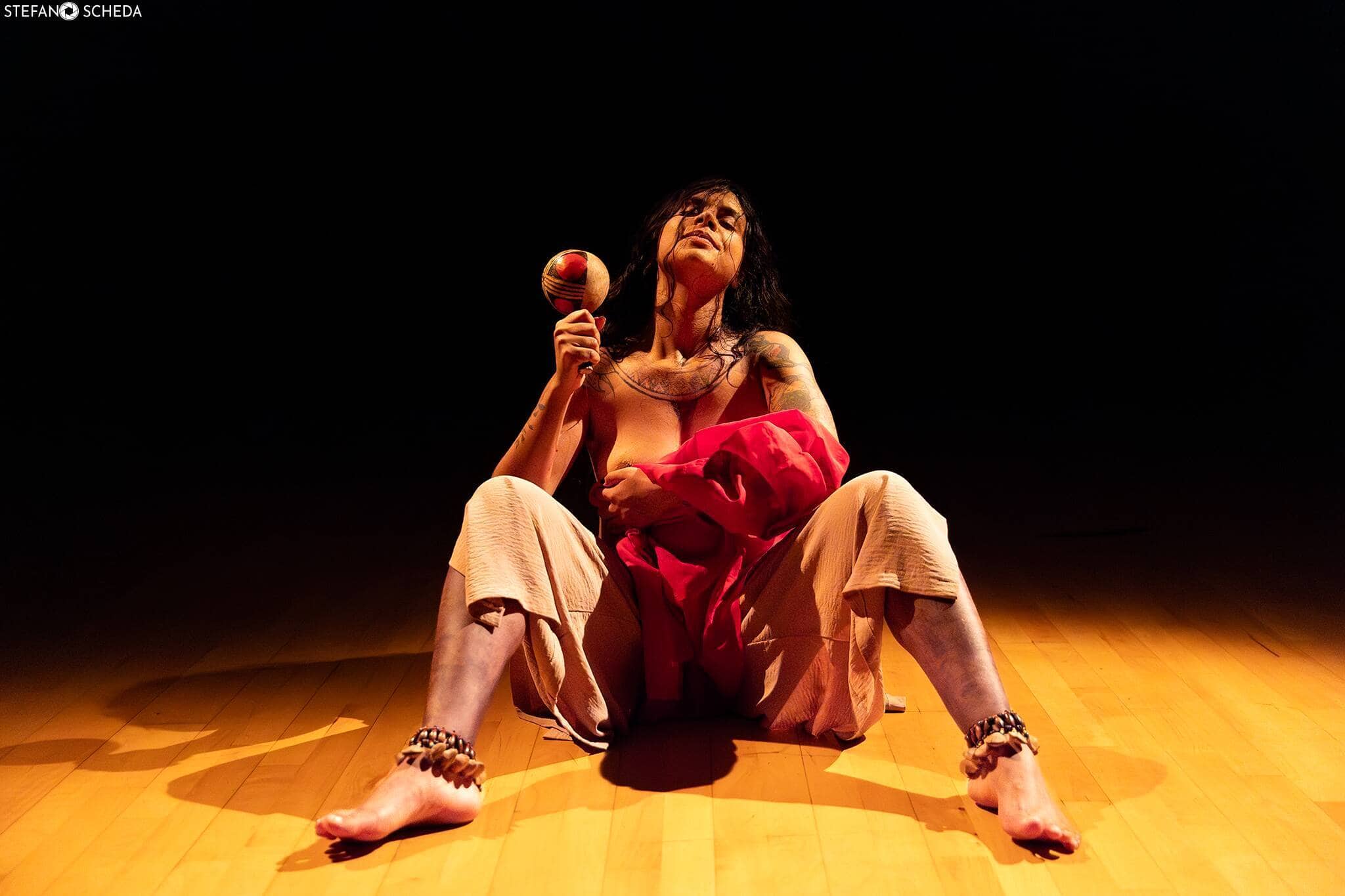 Solo-manifesto que dá voz à urgência dos gritos abafados pelas colonialidades estruturais. Uma performance de confronto, pulsação e resistência, em que a mulher preta reivindica sua presença ritual e política.