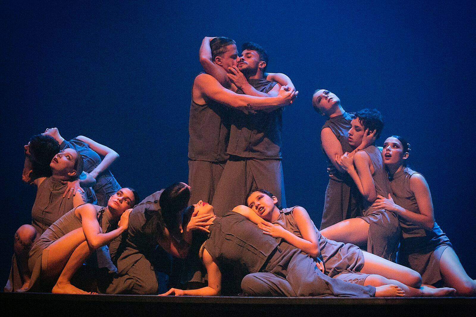 Com a presença dum elenco tão grande em cena, a coreografia tem dinâmicas de composições com conjuntos sendo criados e dissolvidos, em volumes, em movimentações unificadas, lembrando referências como o uso de conjuntos da brasileira Roseli Rodrigues (1955-2010) ou o espanhol Nacho Duato.